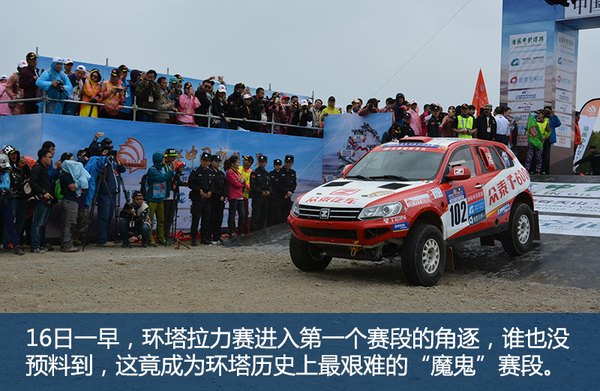草原、戈壁、沙漠、河床、雅丹地貌都是环塔拉力赛中常见的路况,车手会根据提前收到的路书及路况介绍制定应对策略,以求运筹帷幄。但“现实永远比剧本精彩”。在2016环塔拉力赛第一赛段中,连续的降雨让茫茫草原戈壁路化身“魔鬼”泥淖,车手们遭遇了环塔历史上前所未有的挑战。面对困境,众泰越野车队旗下车手在首日(16日)的比赛中也措手不及,经过重新调整,车手刘彦贵在17日的比赛发挥出色,跻身第一赛段战绩排行前十位。