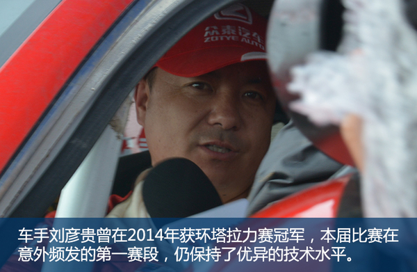 据众泰车手刘彦贵介绍,SS2整个赛段是300公里左右,包含50个必经的“航点”,在开始的一段,他的赛车状态不错,但之后却出现了意外情况。他表示:“在前72公里的戈壁路,车子的状态十分不错,领航员根据路书规划的路线也非常正确,胎压调到2.4Bar,保持了较快的速度,但之后助力管出现故障,赛车失去了助力。”在这种情况下,他依旧驾驶着赛车行驶了220公里完成比赛,带着手套的双手都磨出了水泡。他的努力得到了回报,在整个第一赛段的成绩位列排行榜第8位,为之后的比赛打下良好的基础。