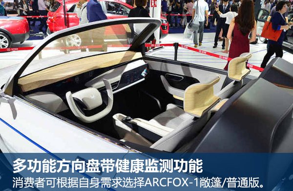 在本届北京车展上,北汽新能源正式对外发布了全新品牌ARCFOX,并推出了入门级产品ARCFOX-1和拥有极致性能的超级跑车ARCFOX-7。近日,网通社从北汽新能源官方获得了ARCFOX-1微型纯电动车的部分参数及配置信息,其可根据消费者自身喜好进行一些个性化定制(如可同时提供敞篷版和普通版车型)。参数方面,ARCFOX-1的最高车速为120千米/时,续航里程则可以达到200公里。北汽新能源内部人士向网通社透露:“按照我们的计划,ARCFOX-1预计将于2017年年初投放市场。”日后这款车也将成为北汽新能源旗下ARCFOX品牌量产的首款产品。