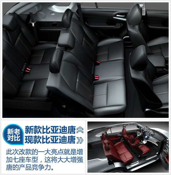 此次改款另一个亮点是将有望推出七座版车型,座椅布局有望采用“2+3+2”式布局,在行李箱内增加两个座位。现如今在国内“7座家用车”概念越来越火热的情况下,比亚迪有望顺势推出七座版SUV唐,再加上自身的新能源车特有属性,从而开拓出一个新的细分市场。