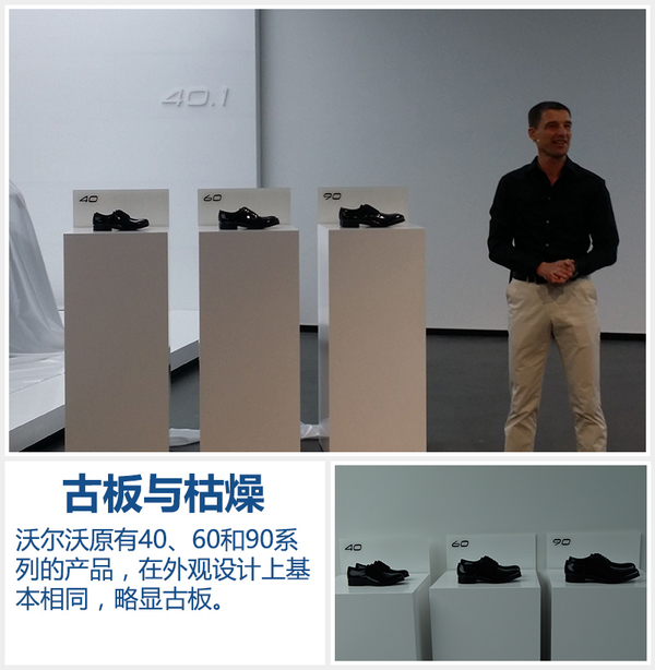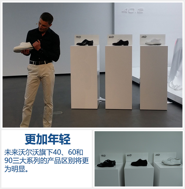 当地时间2016年5月18日下午,在位于瑞典哥德堡的沃尔沃汽车设计展厅,沃尔沃汽车集团正式推出全新CMA豪华紧凑型整车平台架构,并带来基于这一全新架构打造的两款全新40系列概念车。与最新研发的紧凑型车基础架构和全新概念车相比,出现在发布会现场的几双鞋子更吸引笔者的目光。沃尔沃汽车一向给人以严谨、安全、绅士的印象,老一代产品类似于将同样颜色和款式,但尺码有大有小的皮鞋放在一起略显古板与枯燥。