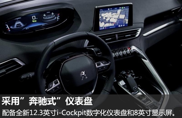 内饰方面,标致全新3008最大的一个亮点便是使用了全新12.3英寸i-Cockpit数字化仪表盘,这款仪表盘可进行个性定制,方便驾驶员操作。同时,新车采用了全新平底式方向盘,且方向盘高度下调了2毫米,驾驶员读取车辆信息时的视野更好。此外,新车还标配了8英寸影音显示屏,反馈速度更快,反馈效果更好。