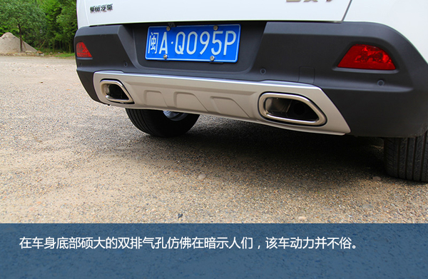 大灯造型精致感突出,灯眉为LED日行灯,远近光源是为卤素并配有自动大灯,符合主流水平。DX7的轴距为2700毫米,这在新车侧面展露无遗,整个数据在同级别中也处于领先位置。尾灯融入尾部线条并微微上翘,给人一种蓄势待发的感觉,同时由灯组延伸的几道线条给灯组造型凸显立体感。在车身底部硕大的双排气孔仿佛在暗示人们,该车动力并不俗。