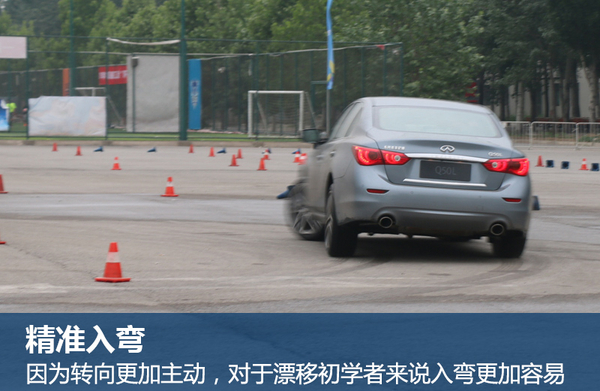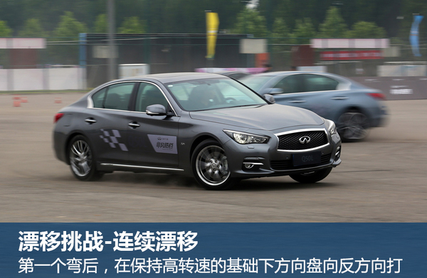 总结:在本次的挑战赛中,通过两项环节的不断挑战,进一步加深对Q50L和Q70L Hybrid的综合性能认识。其中搭载3.5升V6发动机和电动机的Q70L Hybrid,由于起步初段由电机驱动,电机的特征是在第一时间能够爆发出最高扭矩输出,所以这款车在0-100米的加速中十分出色,拥有强烈的推背感。同时在绕桶过程中,由于较大的车身和良好的车身底盘,让整车拐弯姿态时刻保持稳定。在漂移项目中体验到了Q50L不仅作为家庭用车拥有良好丰富的车内空间,同时2.0T涡轮增压发动机的使用,配合后驱系统和线控转向DAS系统,赋予了Q50L自由漂移的能力,对于已经组建了家庭,但内心仍隐匿一颗漂移“心”的消费者而言,Q50L算得上一个好选择。