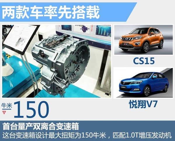 根据长安汽车“芯动力”战略,双离合变速箱是重要组成部分,由长安位于英国的研发中心和重庆动力研究总院负责研发。网通社从重庆青山工业有限责任公司获悉:长安汽车已同意青山DCT170变速器总成(DF515A03/ DF515A02项目)。代号DCT170的变速器是长安历时8年研发的5速双离合变速箱,目前已正式进入量产阶段。长安汽车品牌公关总经理杨大勇透露,5速双离合变速箱将率先搭载在长安今年推出的小型SUV—CS15上。此外,悦翔V7也是首批搭载5速双离合变速箱的车型。