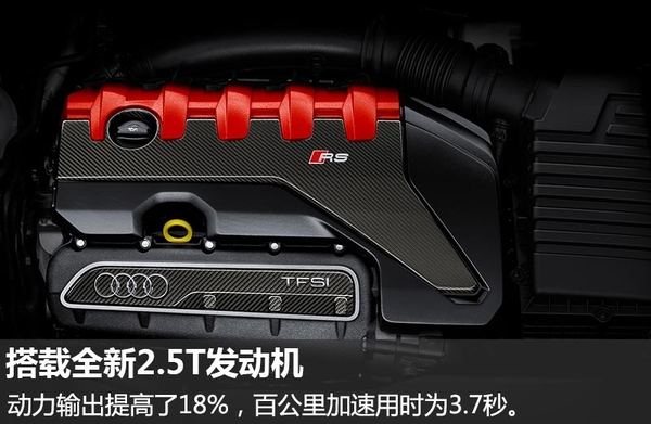 动力方面,奥迪新TT RS Coupe将搭载一款排量为2.5升的五缸涡轮增压发动机,经过调校后动力输出提高了18%,发动机的重量也降低了26公斤,标配有7速双离合自动变速箱和Quattro四驱配置,最大输出功率可达到294千瓦,峰值扭矩为480牛米。新车的百公里加速用时为3.7秒,最高时速可达250公里,奥迪官方可根据消费者需求将最高时速上限提高至280公里。