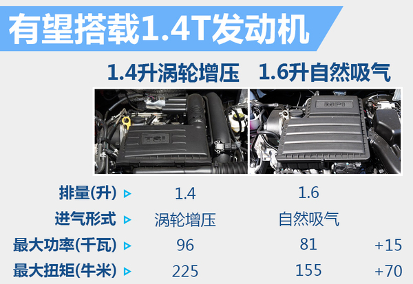 动力方面,新桑塔纳Cross将搭载1.6升自然吸气发动机,最大功率为81千瓦,峰值扭矩155牛米。传动方面,手动版本车型配备5速手动变速箱,自动挡搭配6速手自一体变速箱,与现款桑塔纳并无差异。此外新车还有望搭载1.4升涡轮增压发动机,动力水平较1.6升发动机有着大幅提高,但售价也将随之上升。