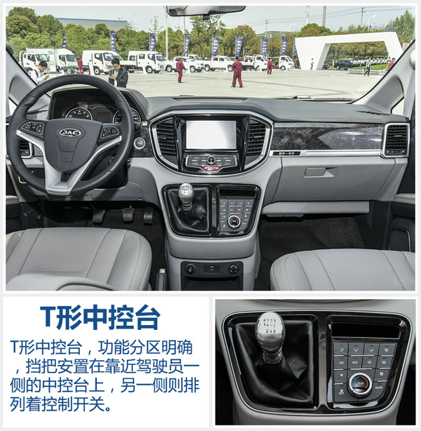 瑞风M4采用了与M3相近的T形中控台,功能分区明确,挡把安置在靠近驾驶员一侧的中控台上,操作方便的同时也更节省空间,另一侧则顺序排列着控制开关。中控区集成一块7寸电容式触摸屏,可提供倒车影像、胎压监测、GPS导航等功能。新车方向盘采用三幅设计,集成定速巡航、车载蓝牙控制,媒体控制等功能按钮。此外,瑞风M4还配备前后分区空调系统,可分别为前后排乘客提供舒适的体验。