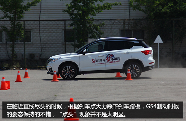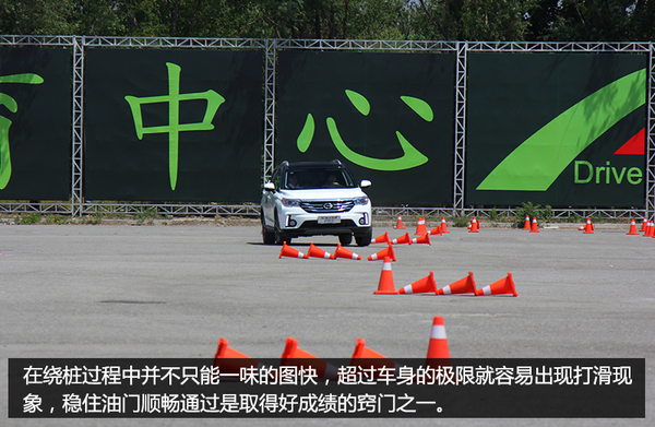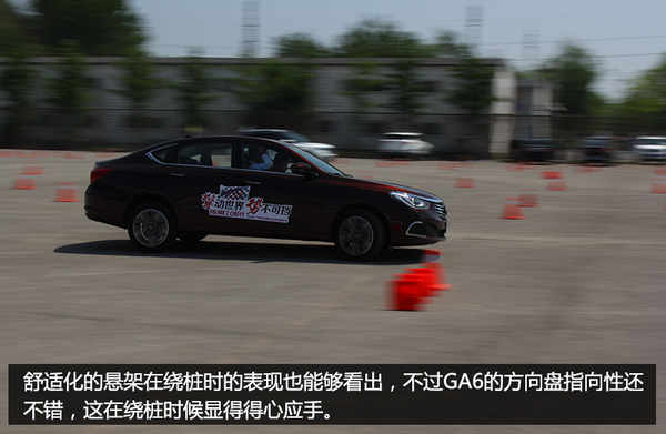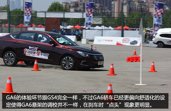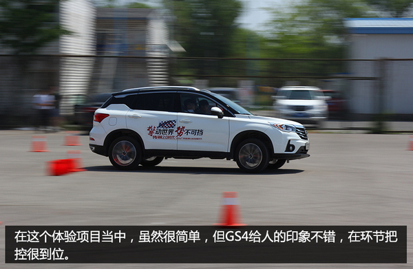 场地内是由多个桩桶摆放成的小型赛道,主要可以体验加速,刹车、以及过弯情况,虽然场地不大,但可以对整车品质有一个初步的感受。并且由于场地的确不大,车辆的最高时速也仅能达到60-70公里每小时,缺少对车辆高速行驶的感受。GS4的场地与GA6的场地桩桶摆放完全一致,测试项目也一样。
