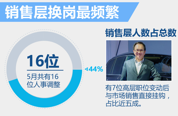 在即将过去的5月中,车企频现高层人事调整并集中出现在合资和豪华品牌,自主品牌中仅有北京汽车一家换帅。网通社通过梳理5月车企高管人事变动后发现,9家车企共计16位重要领导职位发生变动。可以说,一方面车企高管频繁跳槽是在追求更高、更宽广的舞台以实现自我价值,另一方面说明车企在寻找最佳领路人以实现开拓市场的重任。