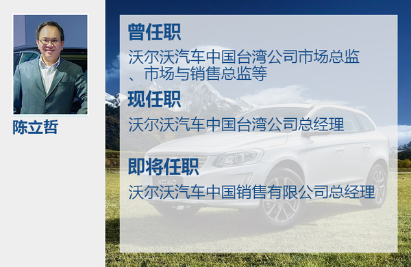 | 陈立哲 | 沃尔沃汽车中国台湾市场总经理 | 沃尔沃汽车中国销售有限公司总经理 | |