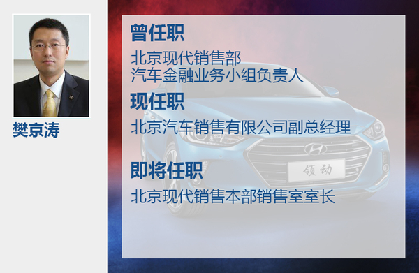 | 北京现代 | 樊京涛 | 北京汽车销售有限公司副总经理 | 北京现代销售本部销售室室长 |