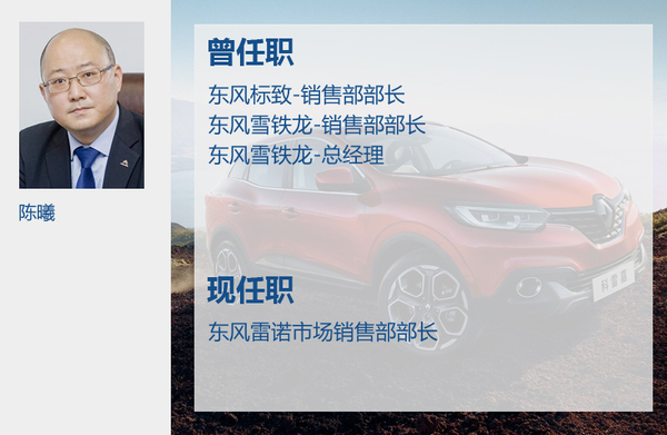 | 东风雷诺 | 陈曦 | 东风雪铁龙总经理 | 东风雷诺市场销售部部长 |