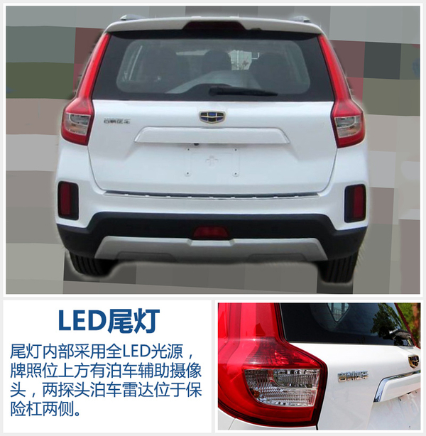 外观方面,全新博翱采用了与博越相似的家族化前脸设计,“水滴涟漪”式的进气格栅与两侧大灯相连接,前保险杠与雾灯外轮廓形成“玉如意”造型。配有透镜的头灯预计将采用卤素光源,内部集成了LED日间行车灯。预计全新博翱的高配车型中,将具备360度全景摄像功能。新车尾部造型延续了现款GX7的设计风格,尾灯仍然采用两侧直立的造型,内部将采用全LED光源。雾灯位于保险杠两侧,下方配有两探头泊车雷达,配合牌照架上方的泊车雇主摄像头,起到减少盲区的作用。银色的底盘护板有望是全系标配,排气尾喉为隐藏式。