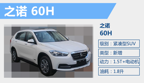 作为一款基于宝马全新X1(代号F49)打造而来的插电式混动紧凑型SUV,之诺60H的动力配置与X1插电混动版相同,由一台代号为B38的1.5升三缸涡轮增压汽油机和一台采用镍钴锰锂离子电池的电动机组成,并且搭配一款6速自动变速箱。根据其申报信息公布的数据,该车百公里综合油耗仅为1.8升。