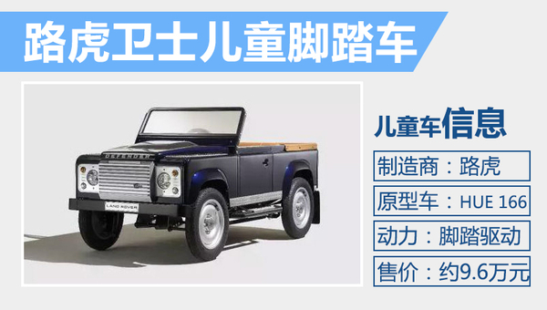 这个只能由儿童来“驾驶”的卫士,它的设计取材自路虎第一代车型HUE 166,这款车采用了与原型车相同的敞篷结构。另外,别看它是一款儿童车,小车的内部却使用了真皮内饰,尾部装上了防滑铝板,采用了复古轮圈和越野轮胎,更犀利是的采用了弹簧悬架并提供制动器。然并卵,你的娃还是不能开着它去越野,只能在自家的草地上转悠转悠~