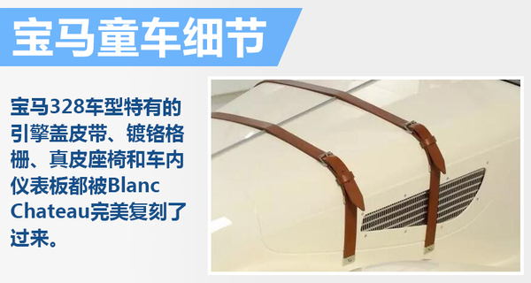 这款1936年的宝马328经典老爷车看上去更有诚意,它同样也是为有钱的儿童们打造,售价比脚踏版路虎还要贵,售价约合人民币12万元。虽然不是宝马原厂出品,但来自法国里昂的Blanc Chateau采用纯手工打造的这款车同样完美的再现了经典。