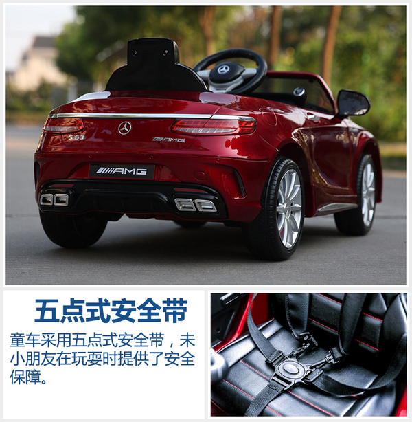 这款奔驰S63童车由曦达母婴生产制造,获得奔驰公司授权书。奔驰S63童车拥有6档变速、四个开关键、一个急停刹车键;多功能方向盘手感舒适,中控配有MP3/USB/TF卡接口,按键即可切换歌曲;轮胎采用实心天然橡胶制造,其特点主要为无需充气、不怕截扎、防滑、减震、抓地性强以及通过性强。最为关键的是,这款车配有五点式防护带,为小朋友的安全极大提升保障。