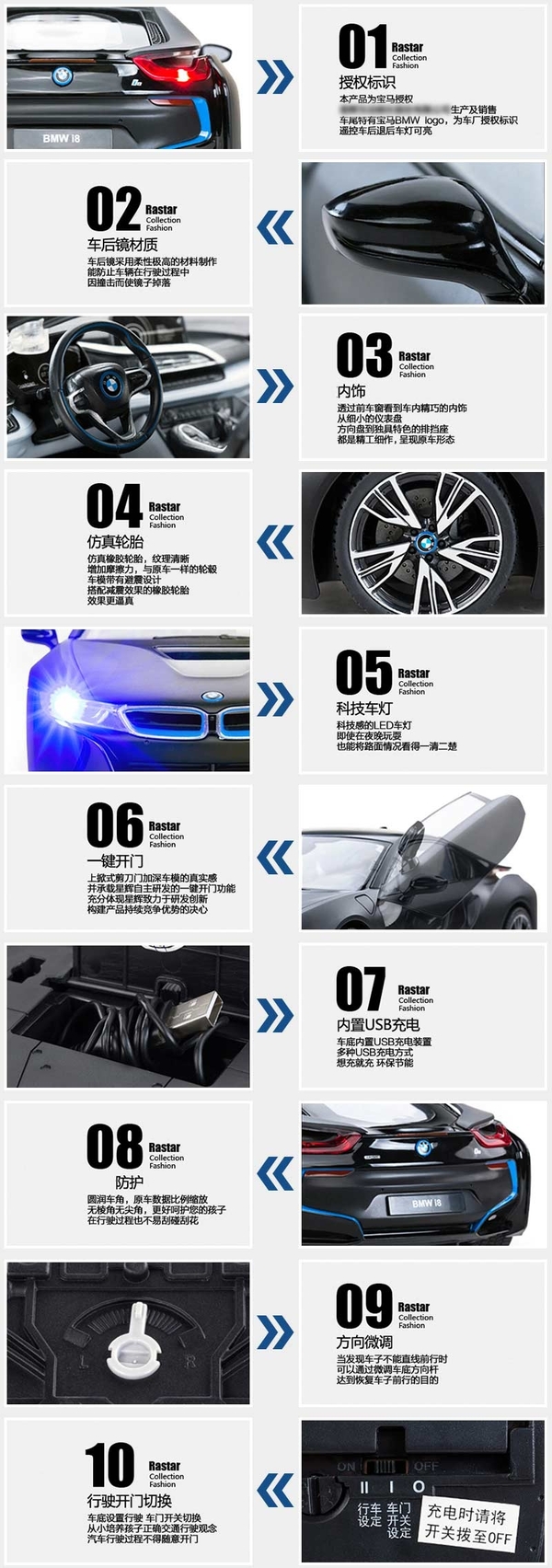 提到遥控车,我最先想到的是没有遥控的四驱车。记得儿时日漫《四驱兄弟》的热播,四驱车从此进入到我们的那个年代,人手一辆奥迪双钻我的伙伴(小时候我以为奥迪双钻就是奥迪旗下的儿童玩具...),那真是绝对的拉风。四驱车随时代慢慢退化,遥控汽车开始流行起来,直至今日。目前市场上遥控汽车的种类繁多,价格也高低不同,我精心挑选了3款价格适中同时拥有厂家授权书的遥控车,包括宝马i8、LaFerrari和布加迪威航,售价分别为198人民币、198人民币和258人民币。