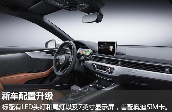 全新A5 Coupe和S5 Coupe标配有LED头灯和尾灯以及7英寸显示屏,支持Android Auto和Apple CarPlay,主被动安全系统升级,同时将首配奥迪SIM卡,方便车主出行。此外,新车的底盘和电子液压转向助力系统经过调校,反馈更加精准。