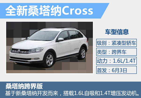 全新桑塔纳Cross车型将与家族中的其他车型一样,基于大众PQ25平台进行打造,外观上将采用更具跨界风格的设计,新车定位于紧凑级轿车。根据之前从国家工商行政管理总局商标局所获得的注册信息,以及大众家族车型的命名方式,桑塔纳Cross版将有望被命名为“桑塔纳·酷纳”。新车推出后将与桑塔纳·尚纳(三厢车)和桑塔纳·浩纳(两厢车)形成更完善的车型布局。