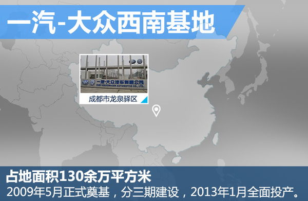 首先来了解一下一汽-大众位于成都的这座“绿色完美工厂”,是由中国一汽集团按照德系标准建立的乘用车生产基地,项目总投资163亿元,于2009年5月8日正式奠基,分三期建设。其中项目一、二期占地面积共81万平方米,设计产能35万辆每年,2012年产能全面释放,日产量达到1000台。