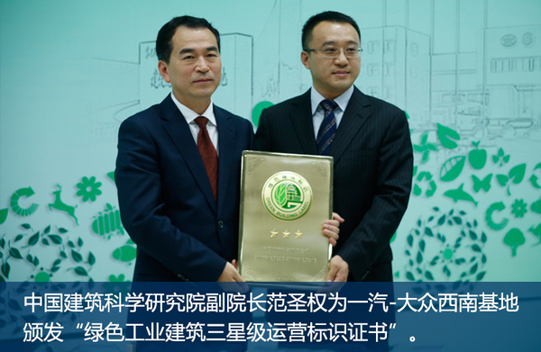 在启动仪式的最后,中国建筑科学研究院副院长范圣权为一汽-大众西南基地颁发“绿色工业建筑三星级运营标识证书”。继一汽-大众华南基地获得首个国内汽车领域“绿色工业建筑三星级设计标识”之后,西南基地又成为第一个获得绿色工业建筑三星级运营标识的项目。随后,本次体验日活动正式启动。