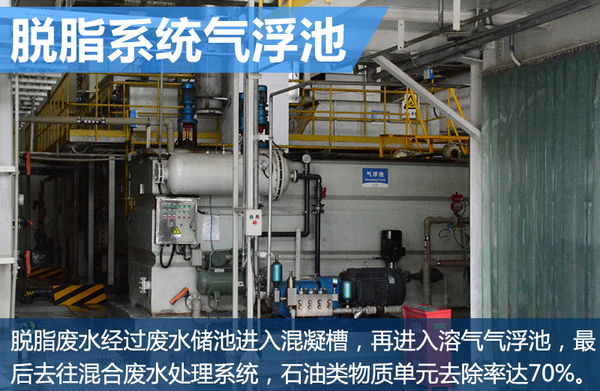 一汽-大众成都工厂图涂装车间的废水处理站于2013年正式投入运行,拥有支撑年产轿车30万辆的处理能力,日处理能力达到1680立方米,废水处理采用针对性预处理+生化处理工艺。废水处理站主要设备包括脱脂系统气浮池、兰美拉斜板沉淀池、电泳铁碳微电解、电泳混凝反应池、混合污水二沉池、生化系统曝气池、大功率曝气机、污泥机以及污泥压滤机。