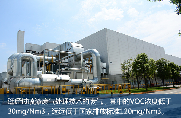 了解废水处理站相关环节之外,“三废”中另外一个很重要的环节就是对于废气的处理。笔者随工作人员来到废气处理站,为降低喷漆废气中VOC的含量,引进了喷漆废气处理技术,年减排VOC 40吨,该废气处理装置分为四个部分:气体分流管路、VOC浓缩部分、VOC处理设备、余热回收装置。经过整套设备处理后的废气进行烟囱排放,其中排放气体中VOC浓度低于30 mg/Nm3,远远低于国家排放标准120mg/Nm3。此外,经工作人员介绍,一汽-大众西南基地针对固体废物,比如废纸壳,废铁等,统一打包后,交由专门的公司回收,回收利用率达到90%。