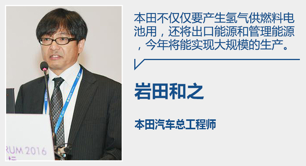 岩田和之曾提到在日本多发的地震,并表示:“本田将利用电力汽车作为供电源来应对气候灾难,在未来,汽车将会成为城市的电池或者是发电机。本田不仅仅要产生氢气供燃料电池用,我们还将出口能源和管理能源,今年将能实现大规模的生产。”