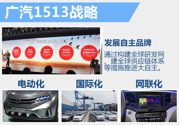 广汽集团执行董事、常务副总经理冯兴亚表示:“十三五期间,自主品牌将是广汽的重中之重,广汽将集整个集团之力,通过构建全球研发网、建立全球供应链体系等措施来全力推进‘大自主战略’。此外,广汽也将在电动化、网络化与国际化三个方面寻求突破。”