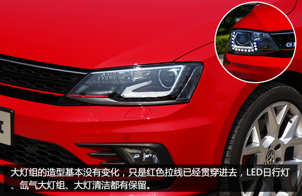 此次新速腾GLI应该算是中期改款,动力虽然没有变化,但在外观造型以及配置上都有所调整。中网红色的红线现在已经成为大众“性能车”的标志,速腾GLI此次把红线加了上去,更富运动气质,这也比老款车型更具有识别性。大灯组的造型基本没有变化,只是红色拉线已经贯穿进去,LED日行灯、氙气大灯组、大灯清洁都有保留。