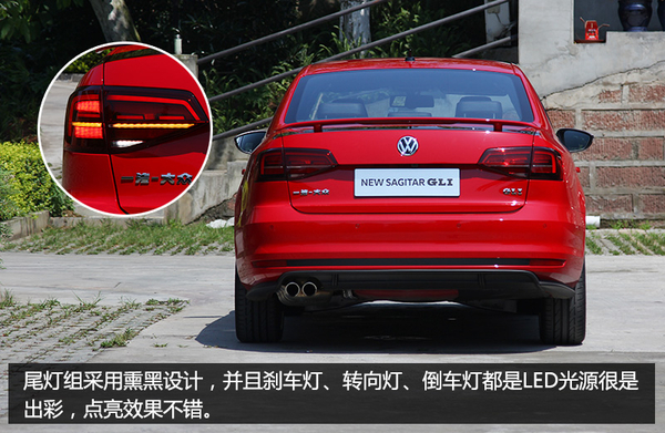 雾灯造型有所变化,新增三条虎爪式的设计,光源并没有变化。保险杠两侧的风刃也是区别普通速腾与GLI区别的地方,这种设计是在为空气动力学做出的考虑。速腾GLI的后视镜由镀铬材质包裹,俗称“银耳”这种设计是奥迪高性能车的标志,此次运用到速腾GLI上,也为新车增添了些许亮点。全新设计的尾翼造型更犀利,据工程师介绍,尾翼可以在时速120公里以上时,尾部上升力优化43%,全LED的尾灯组很是出彩,点亮效果不错。