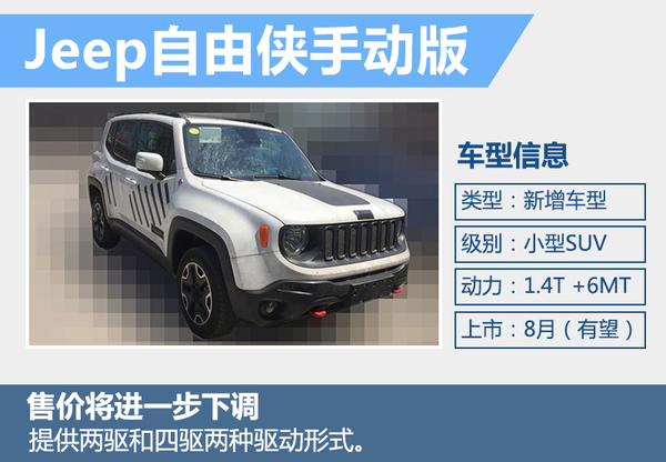 自由侠是广汽菲亚特克莱斯勒汽车销售有限公司成立以来,推出的第二款国产车型,新车已于5月28日正式投入市场,官方指导售价为14.18-17.88万元。目前在售的国产自由侠搭载1.4T发动机并匹配7速双离合变速箱,即将新增手动版车型。近日,网通社获得了一组国产Jeep自由侠的路试谍照。新车将沿用1.4T发动机,匹配一款6速手动变速箱,上市后有望成为国产自由侠的入门车型,从而使新车售价进一步下探。