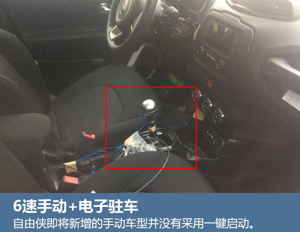 在新车内部,自由侠手动车型同样配备6.5英寸中控触摸显示屏并采用三辐式多功能方向盘,空调出风口下部的“SINCE 1941”字样,依旧“传承”着Jeep品牌的悠久历史。通过谍照可以看到,自由侠即将新增的手动车型并没有采用一键启动。另外,新车采用手动变速箱后预计将沿用目前自动车型上使用的电子驻车系统。
