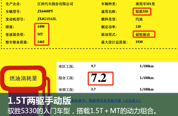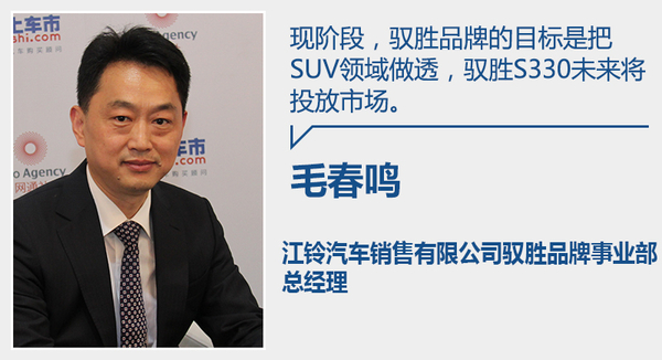 不久前江铃旗下驭胜品牌发布了全新S350和S330,深化布局SUV市场。江铃汽车销售有限公司驭胜品牌事业部总经理毛春鸣在与网通社沟通时表示:“现阶段,驭胜品牌的目标是把SUV领域做透,量产版驭胜S330是我们的第二款SUV,未来将投放市场。“网通社从国家工信部获悉:驭胜S330将推出搭载1.5升涡轮增压发动机的车型,并提供5速手动和6速手自一体变速箱可供选择。此外,驭胜S330将提供配备有全时四驱系统的车型。