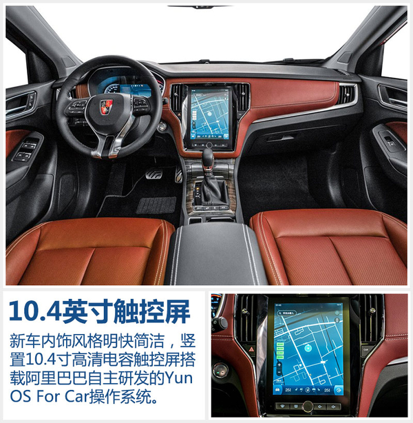 内饰部分同样采用“律动设计”理念,新车整体设计风格明快简洁,为驾乘者带来宽敞和延伸感的视觉空间。内饰最大亮点是10.4寸高清电容触控屏,搭载了阿里巴巴自主研发的Yun OS For Car操作系统,该系统可借助独立ID身份账号,通过大数据为用户提供“千人千面”个性化服务及体验。此外,系统可通过不断学习和记忆用户的驾驶路线和习惯,可在出现状况时提前通知用户并建议新路线。也可预判用户生活中各类需求以及在快没油的时候提醒并推送最近的加油站信息等。