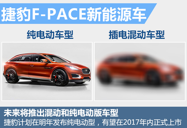 捷豹F-PACE除了加长版和高性能版,在新能源这一细分市场中,预计未来将推出插电混动版和纯电动版车型。纯电动版车型采用锂离子电池作为动力来源,凭借电动机使电能源转化为动能,从而驱动车辆行驶。此外,新车有可能会采用全时四驱系统,并可达到483公里的续航里程。捷豹计划会在明年发布纯电动型,有望在2017年内正式上市。