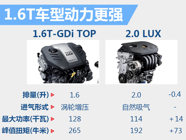 动力&油耗对比:新增1.6T-GDi TOP车型动力更强,油耗低0.8升