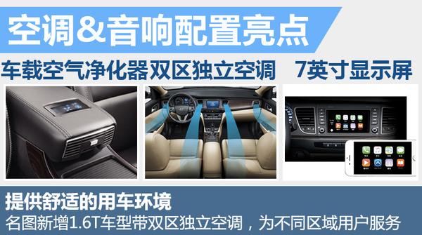 空调&音响配置对比:新增1.6T-GDi TOP车型配备双区独立控制自动空调