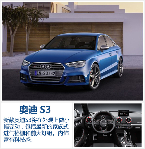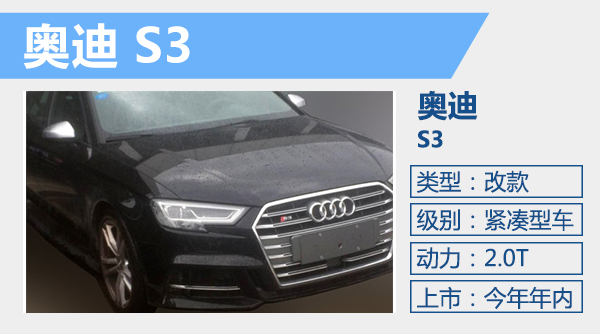 根据此前公布的消息,奥迪S3有望于今年夏天全球上市,网通社不久前获取了S3谍照。从图片来看,新款奥迪S3将在外观上做小幅变动,包括最新的家族式进气格栅和前大灯组。动力方面仍然采用2.0T涡轮增压发动机,但调校更为犀利,根据已经公布的海外版信息来看,其最大功率和峰值扭矩将达到228千瓦和400牛米,较现款车型分别提升18千瓦和20牛米。