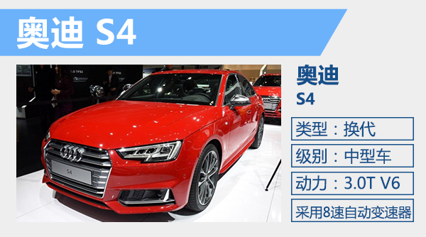 已经在北京车展发布的全新奥迪A4L获得了广泛关注,紧随而来的进口S4同样值得期待。新车搭载全新3.0升涡轮增压V6发动机,最大功率可达260千瓦,峰值扭矩达到500牛米,配备8速自动变速器以及quattro四驱系统,最高车速可达250公里/小时。百公里油耗为7.3升,而加速时间仅为4.7秒。其高配车型还加装运动型差速锁,可以主动分配两个后轮间的扭矩。