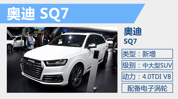 新车搭载全新的4.0升TDI V8柴油引擎将取代曾经搭载于Q7的老款4.2升发动机,该台发动机最大功率可达325千瓦,在1000转/分钟时便可输出900牛米的扭矩。该车创新性的使用电子涡轮技术,即一个电动压缩机和两个涡轮增压器共同工作,其中电子涡轮由48V电器系统提供动力,在低转速时辅助一号涡轮增压器工作,实现涡轮零迟滞。目前该车仅提供柴油版,为迎合欧洲以外的市场,预计奥迪还将设计制造汽油版SQ7,届时将有望引进中国。