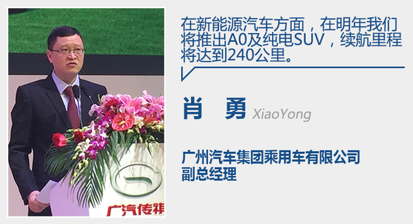 在新能源汽车领域,广汽集团乘用车目前仅有GA5 PHEV一款产品。根据广汽集团此前公布的“十三五”规划,未来五年在新能源领域将实现突破,构建新能源平台在内的5大车型平台,投放多款新能源汽车。广汽乘用车副总经理肖勇向网通社表示:“在新能源汽车方面将会继续打造和不断推出强有力的车型,比如说GS4车型,陆续将会推出EV纯电版和PHEV插电增程式版。”另外,肖勇还谈到,在明年还将推出A0级纯电SUV,续航里程将达到240公里。