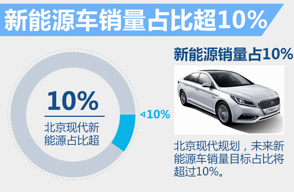 北京现代第九代索纳塔混动版于6月13日正式上市,在上市发布会现场,北京现代汽车有限公司常任副总经理刘智丰先生公布了全新的新能源战略,他向网通社表示:“北京现代新能源战略命名为‘NEW’,并将在十三五末期实现新能源车销量占比超过10%的目标”。根据规划,到2020年北京现代将打造四大新能源平台,同时推出9款新能源产品。
