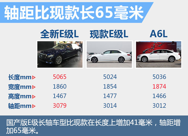全新一代E级长轴距轿车基于奔驰MRA(后驱/四驱)模块化平台打造,在设计上更趋向家族化,外观与奔驰S级更加接近。新车针对中国市场推出长轴距版本,尺寸大幅增加,同时标准轴距车型也将保留,在北京奔驰进行投产。全新一代奔驰E级长轴距版将于今年秋季正式上市,在中级车(全新C级)补强后,奔驰将进一步加强在中大型车领域的竞争力。
