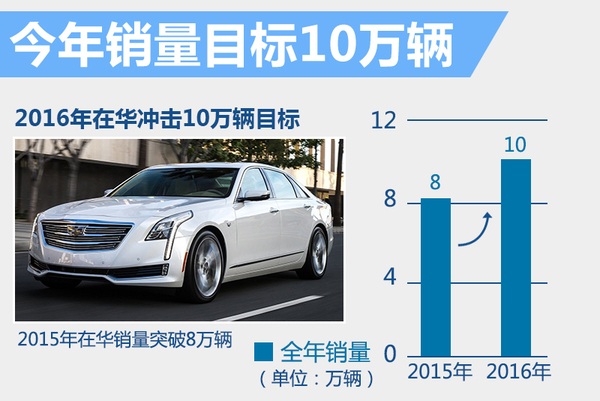 凯迪拉克去年在华累计销量突破8万辆,同比增长8.9%。其将继续推进国产化进程,到2018年旗下产品95%以上会实现本地化生产。上汽通用汽车副总经理施弘先生曾表示:“2016年,凯迪拉克将力争实现10万辆的全年销量。”今年前5个月,凯迪拉克已经完成目标销售的36%,随着XT5的上市以及CT6 PHEV的推出,凯迪拉克有望在今年下半年表现更好的增长势头。