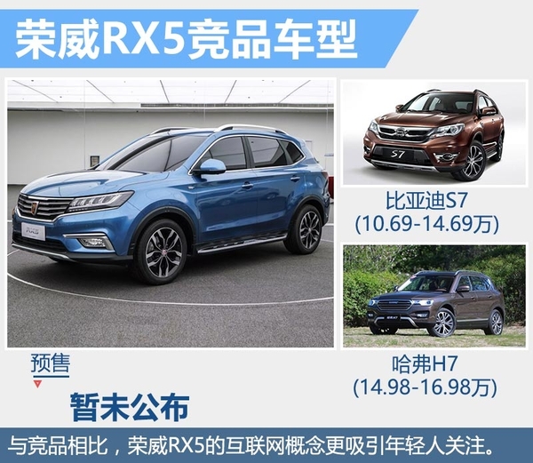 荣威RX5定位于中型SUV,未来新车上市后将与比亚迪S7、哈弗H7所在的中型SUV市场车型展开竞争,相比于竞品车型荣威RX5拥有其独有的互联网概念,支持YunOS操作系统也必定能吸引到更多潜在的年轻消费群体。