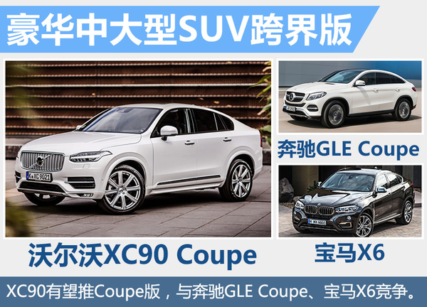 另一位德系三强成员奔驰,也在去年推出了GLE的跨界版车型GLE Coupe(国内称GLE 运动SUV)。未来,沃尔沃有望在这一细分领域布局相应的产品,基于XC90推出一款跨界SUV,有望命名为XC90 Coupe
