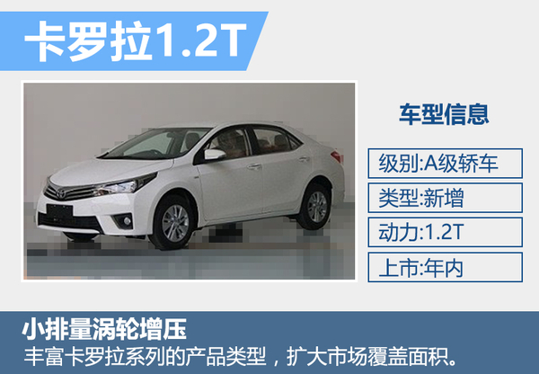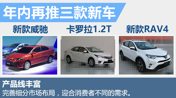 一汽丰田得益于小型车战略的推行,前5月销量同比增长24.4%。网通社从一汽丰田官方了解到:搭载1.2T涡轮增压发动机车型将于年内推出。一汽丰田销售副总经理井口一成在接受采访时表示:下半年将推出新款RAV4、新款威驰和卡罗拉1.2T车型,三款新车的推出将巩固目前的销量增速。